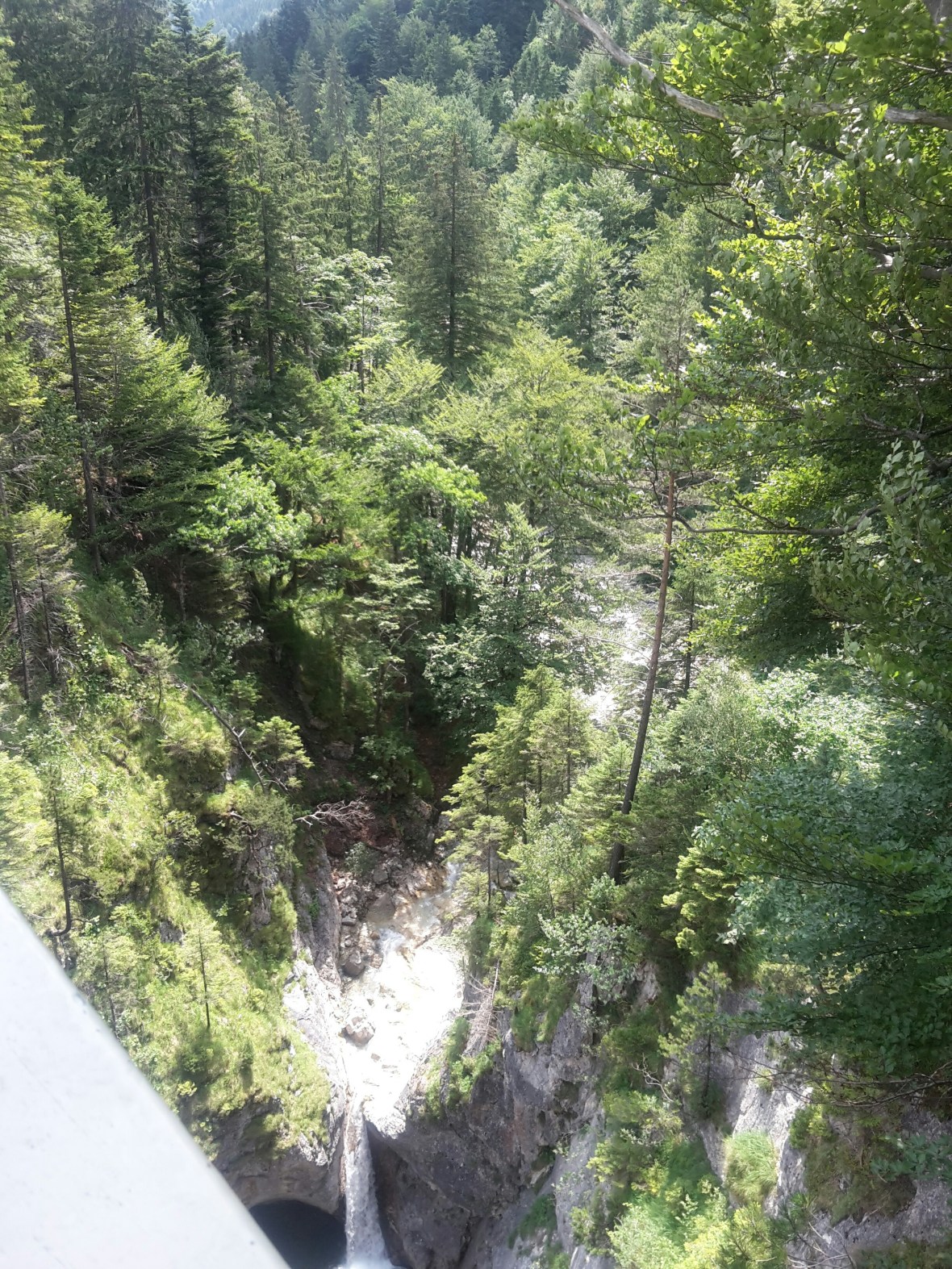 Dann war es soweit, das Getümmel begann. Ursprünglich hatte ich ja mit einer Führung auf Neuschwanstein geliebäugelt, das Vorhaben aber sehr schnell aufgegeben. Schätzungsweise 75% Asiaten und der Rest andere Ausländer. Deutsch sprechende Leute waren auch dabei, gefühlt max. 5%.Um auf den Tegelberg zu kommen musste ich über die Marienbrücke die über die Pöllatschlucht führt. Tja, und dafür musste man tatsächlich bestimmt 10 Minuten anstehen. Drüber gehen war auch sehr schwierig weil jeder ein Selfie von sich mit dem Schloß im Hintergrund brauchte.