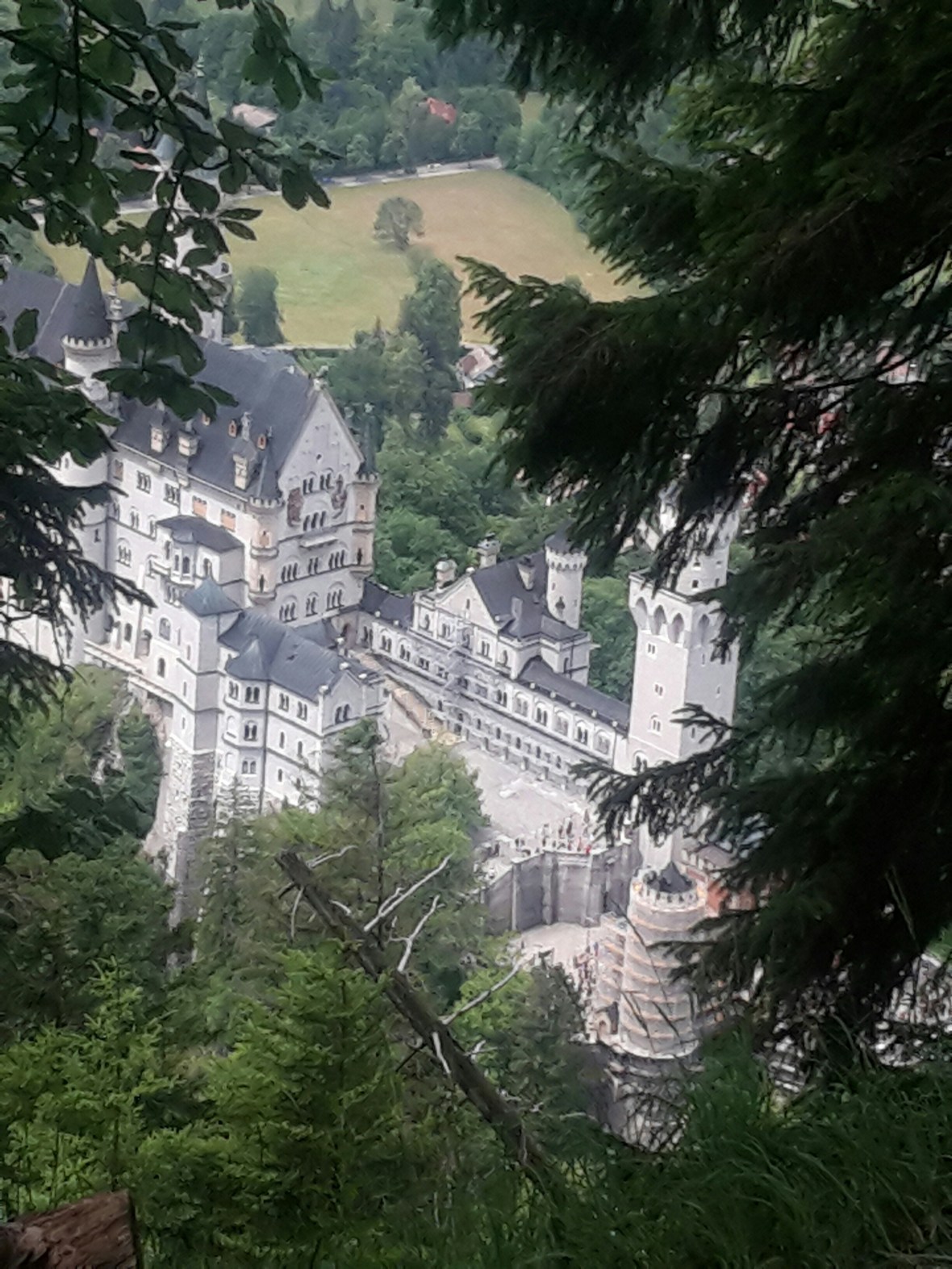 Zuerst ist allerdings der Falkenstein dran. Eine Ruine steht dort oben zu der eine Straße hinauf führt. Später lese ich, die Straße wurde gebaut weil der König Ludwig II auch dort ein Märchenschloss, noch größer als Neuschwanstein, bauen wollte. Das Geld wurde knapp und mit seinem Tod konnten die Pläne ad acta gelegt werden. Statt dessen wurde später ein Hotel hingestellt.