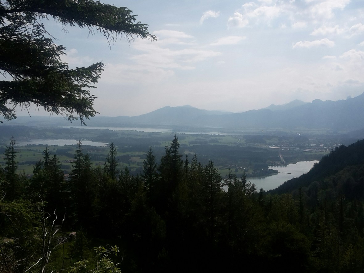 Vom Zirmgrad Richtung Saloberalpe jede Menge grandioser Ausblicke auf die Seeenlandschaft mit Weissensee, Forggensee und Hopfensee.