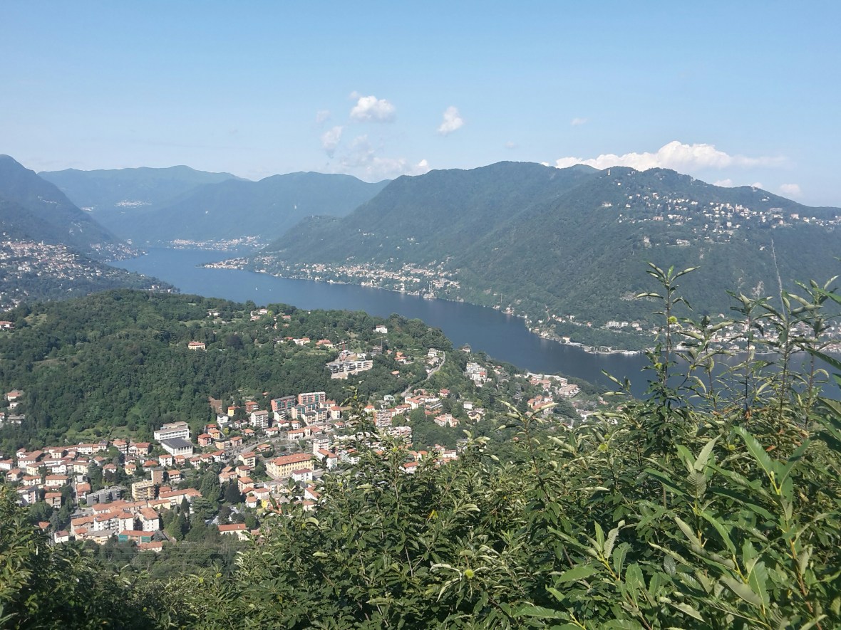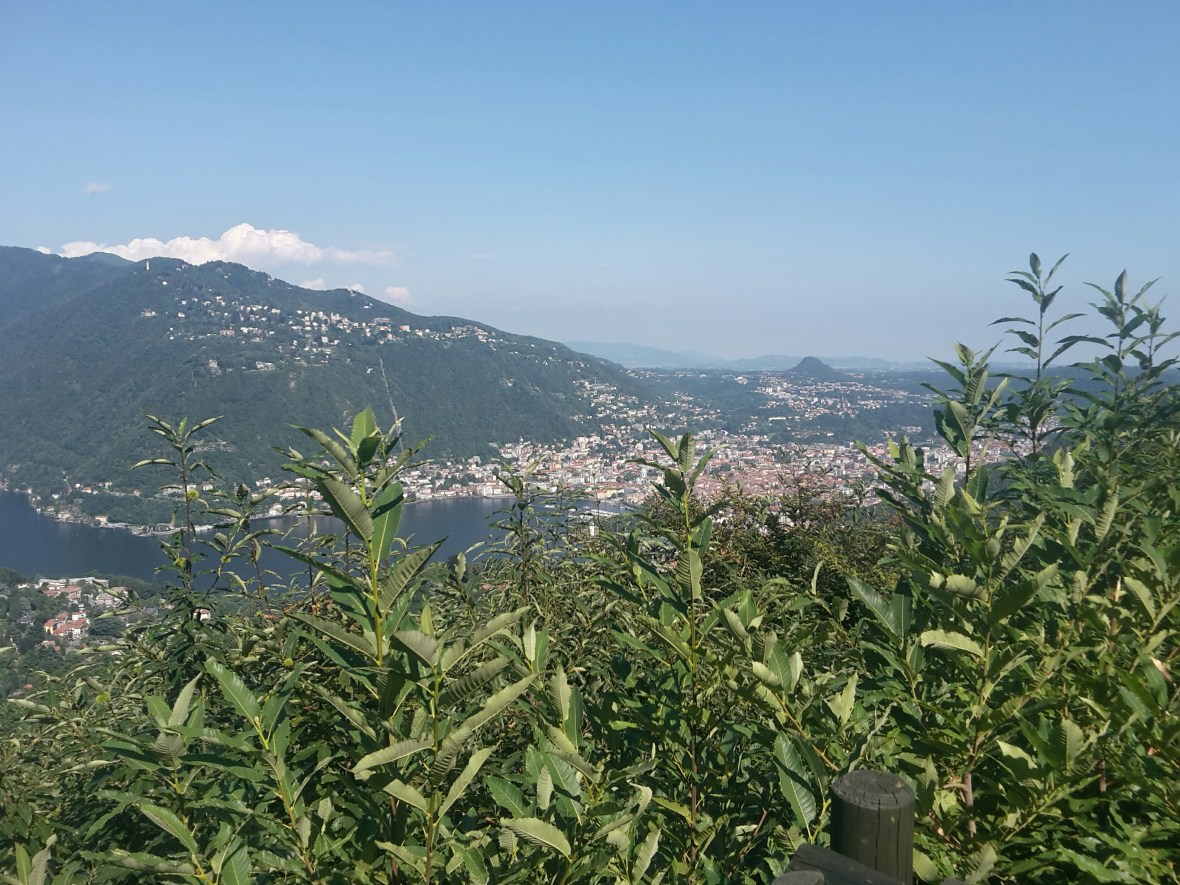 Leider ist die Landesgrenze nicht oben am Berg, es geht weiter nach oben. Irgendwann ist das auch geschafft und ich werde mit der ersten Aussicht auf den Comer See belohnt.