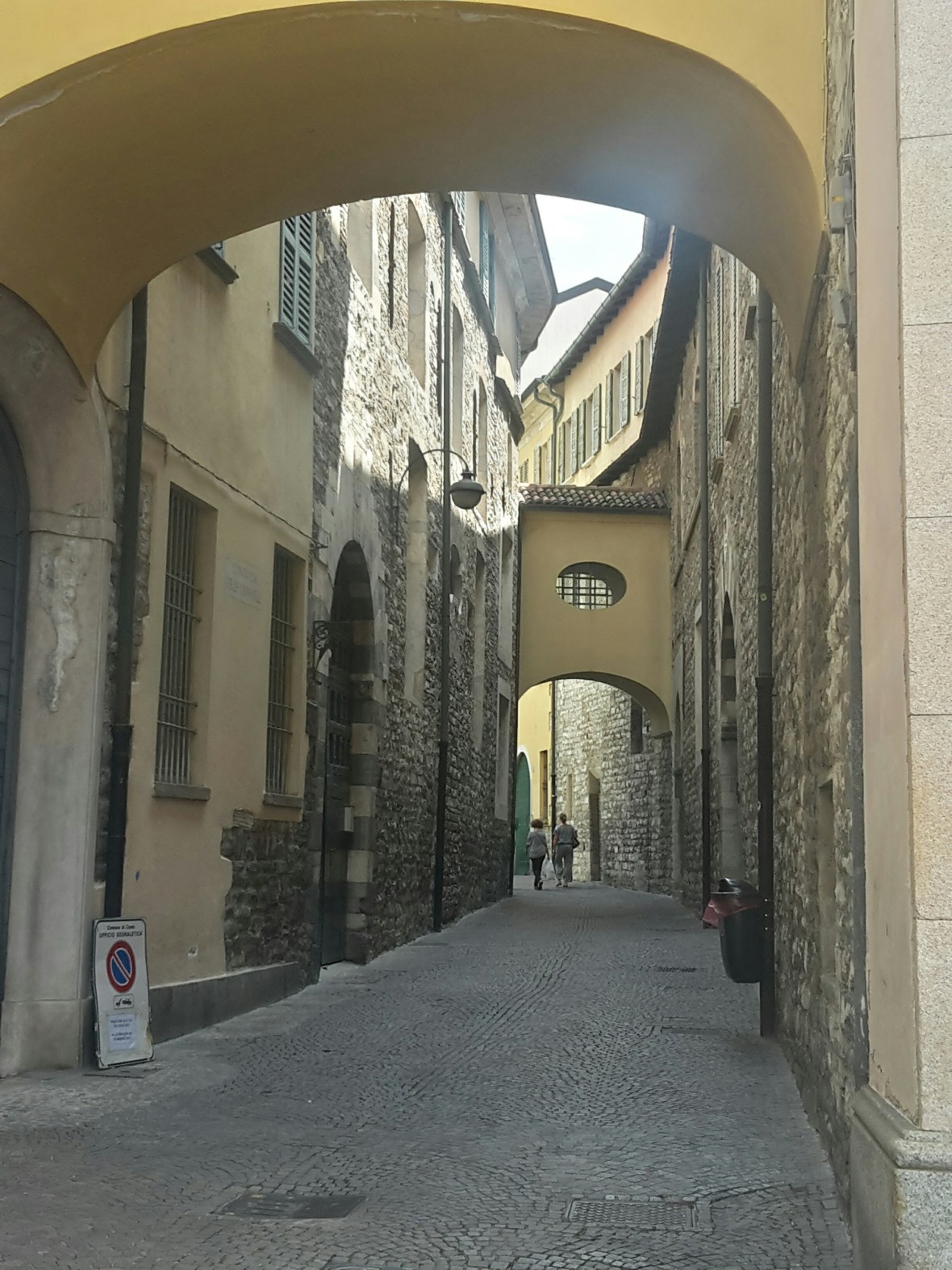 Dank der Wasserstellen die es hier im Süden oft gibt, geht mir das Trinkwasser nicht aus und das benötige ich in rauen Mengen. In Mendrisio, der letzten großen Stadt in der Schweiz führt der Weg nur durch das Industriegebiet. Grauenvoll! Der Industriebahnhof wird umgebaut und die geplante Unterquerung kann ich nicht benutzen. Also ein Umweg von mehr als einem km, ich muss eine andere nehmen. Die nächste ist nur für Autofahrer gedacht und ich lege einen Spurt hin damit ich in einer Verkehrspause unbeschadet durchkomme. Danach verläuft der Weg durch ein schattiges renaturiertes Flußtal, sehr angenehm zu laufen.