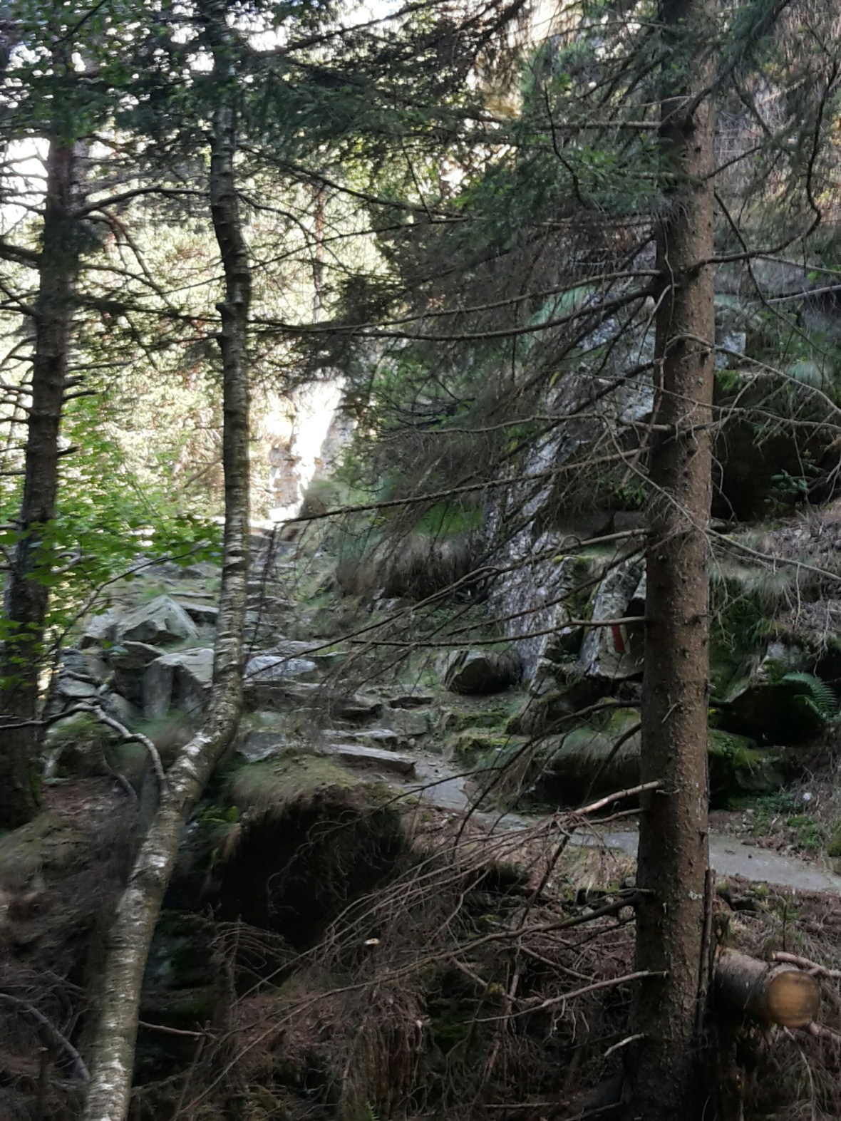 Den Hang wieder zu sehen ruft gleich wieder ein flaues Gefühl im Magen hervor. Während des Wanderns vergeht es und ich genieße den Tag ohne große Anstrengungen. In diesem Talboden würde ich definitiv nicht wohnen wollen. Es hat zwar tolle Berge, am Fluss entlang einen richtigen wieder schön renaturierten breiten Grüngürtel. Aber das große Aber ist der Lärm, nicht nur Verkehr. Jede Menge Industrie hat sich angesiedelt bei der guten Verkehrsanbindung. Kieswerk, Steinbrüche und Logistik erzeugen jede Menge Staub und Lärm. Dann noch die Hubschrauber, einer fliegt immer. Granitblöcke hinauf für Straßen oder Befestigungen, abgeholzte Bäume hinunter zum Sägewerk. Heute hatte ich die Chance alles zu sehen, die Tage vorher habe ich alles meistens nur gehört.