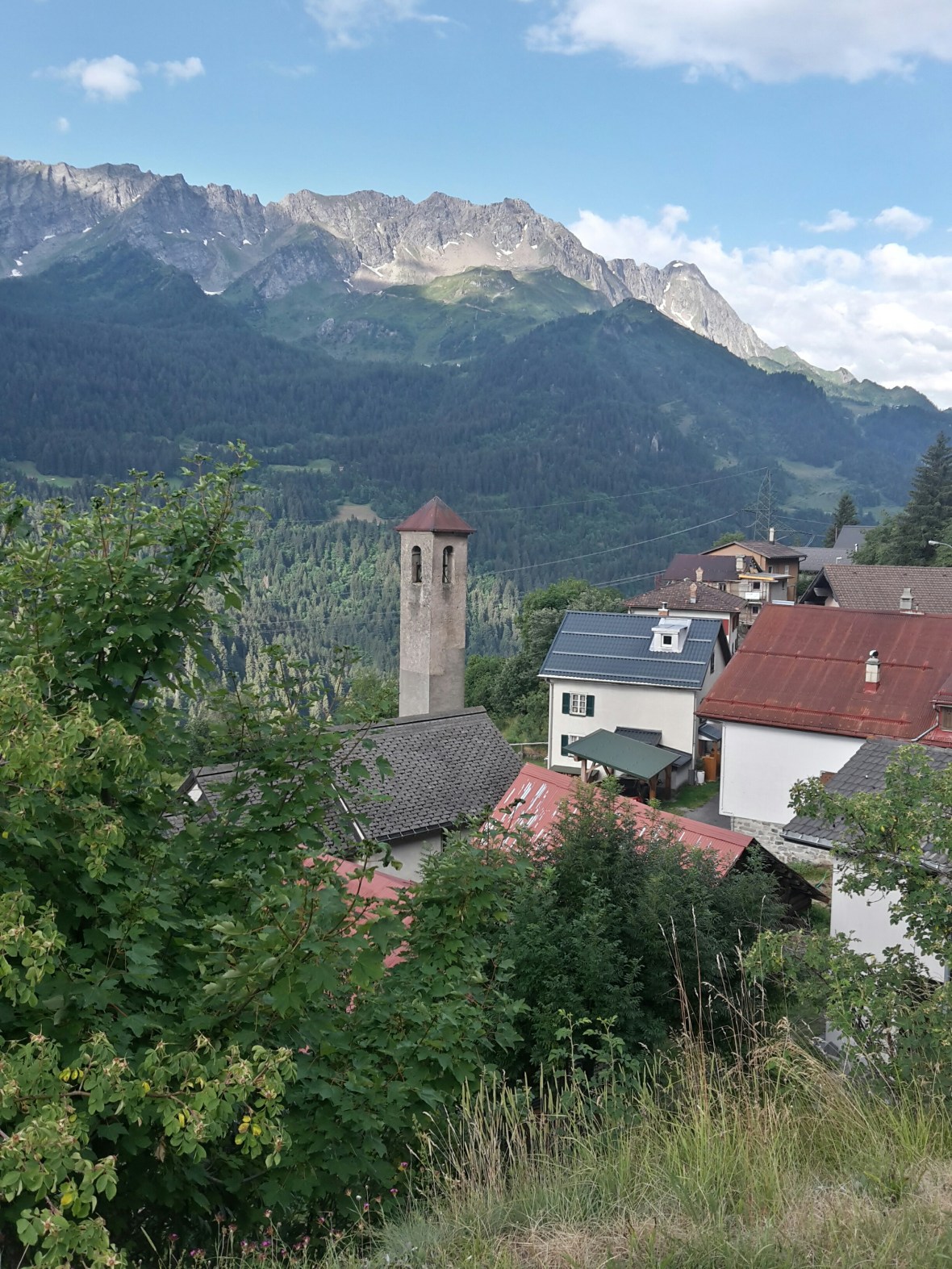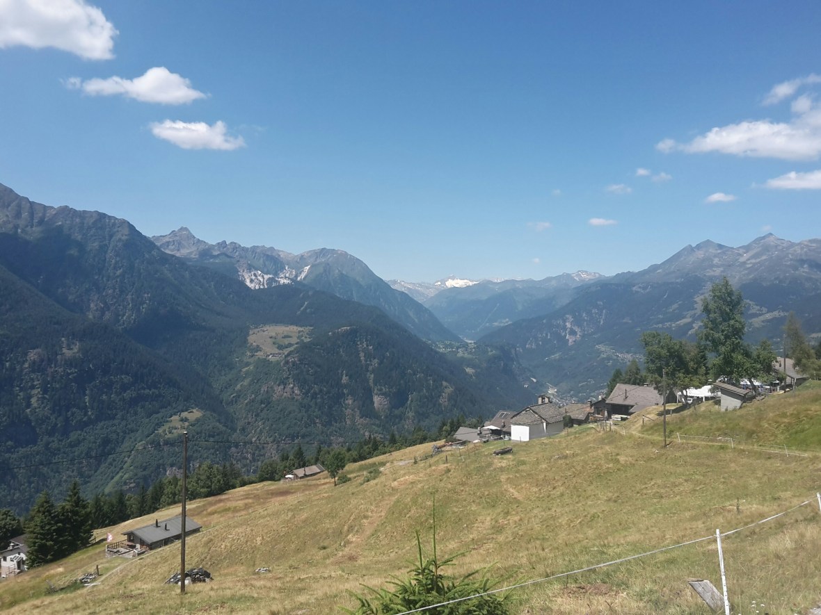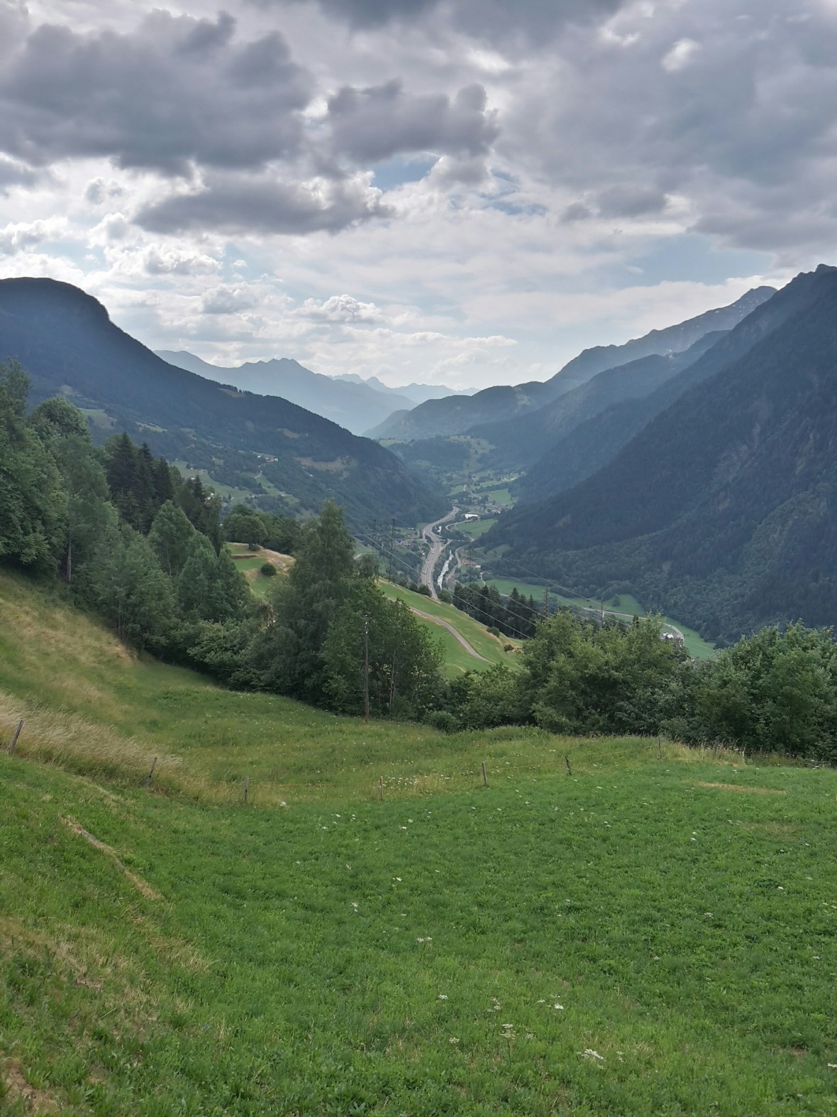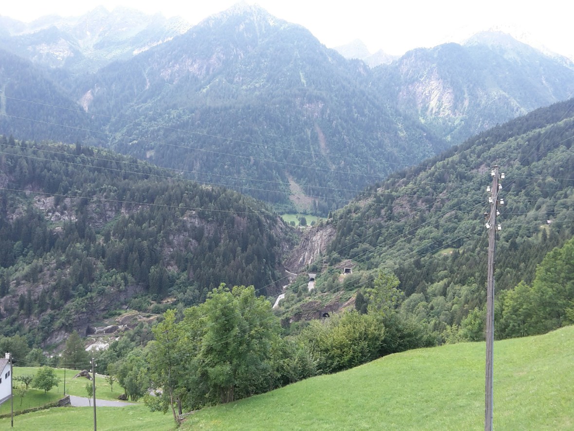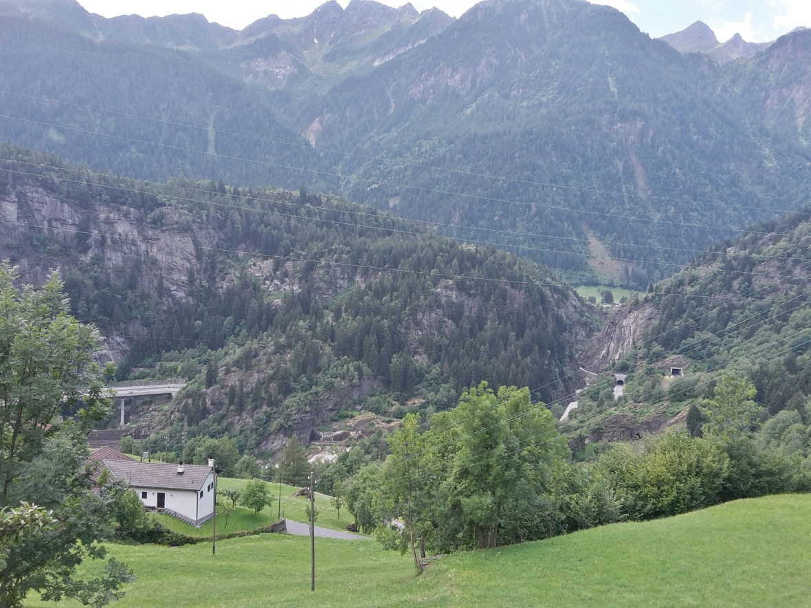 Eigentlich liegt Faido neben der Tour. Aber ich bin auf Höhenwegen unterwegs, scheinbar auf einer sehr alten Straße bzw. Verbindung zwischen den teils winzigen Dörfern. Ich sehe immer wieder das Schild Strada alta. Ab und zu geteert, oft aber nur Schotter. Ja und da ist natürlich so gut wie keine Unterkunft zu kriegen. Deshalb bin ich in Osco, meinem Zielort, ewig weit extrem steil den Berg hinunter zum Bahnhof nach Faido, gestiegen. Das ist jetzt der Vorteil dieses Tales, das ja fast eine reine Transitstrecke nach Süden ist. Fast jeder Ort im Tal hat einen Bahnhof und alle 60 Minuten fährt ein Zug in jede Richtung und dazwischen alle Stunde ein Bus der auch noch kleinere Orte anfährt. Es geht also, die Abstimmung zwischen Bus und Bahn. So bin ich wieder zurück nach Airolo gefahren. Interessant war die veränderte Perspektive aus dem Zug zu der Strecke die ich in luftiger Höhe gewandert bin.