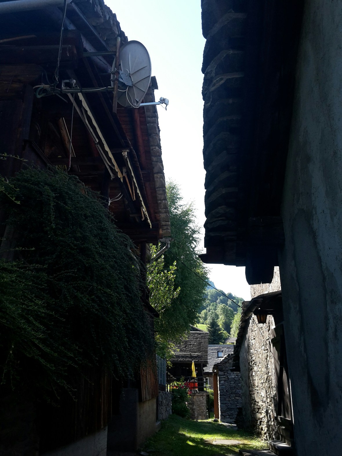 Uralte Häuser stehen an der Strecke. Viele sind bewohnt oder dienen als Ferienhaus, was von den heimischen Tessinern nicht gern gesehen wird, habe ich mir sagen lassen. Das sind wohl oft Deutschschweizer und die sind nicht so beliebt bei den italieschen Schweizern, obwohl sie drauf angewiesen sind.