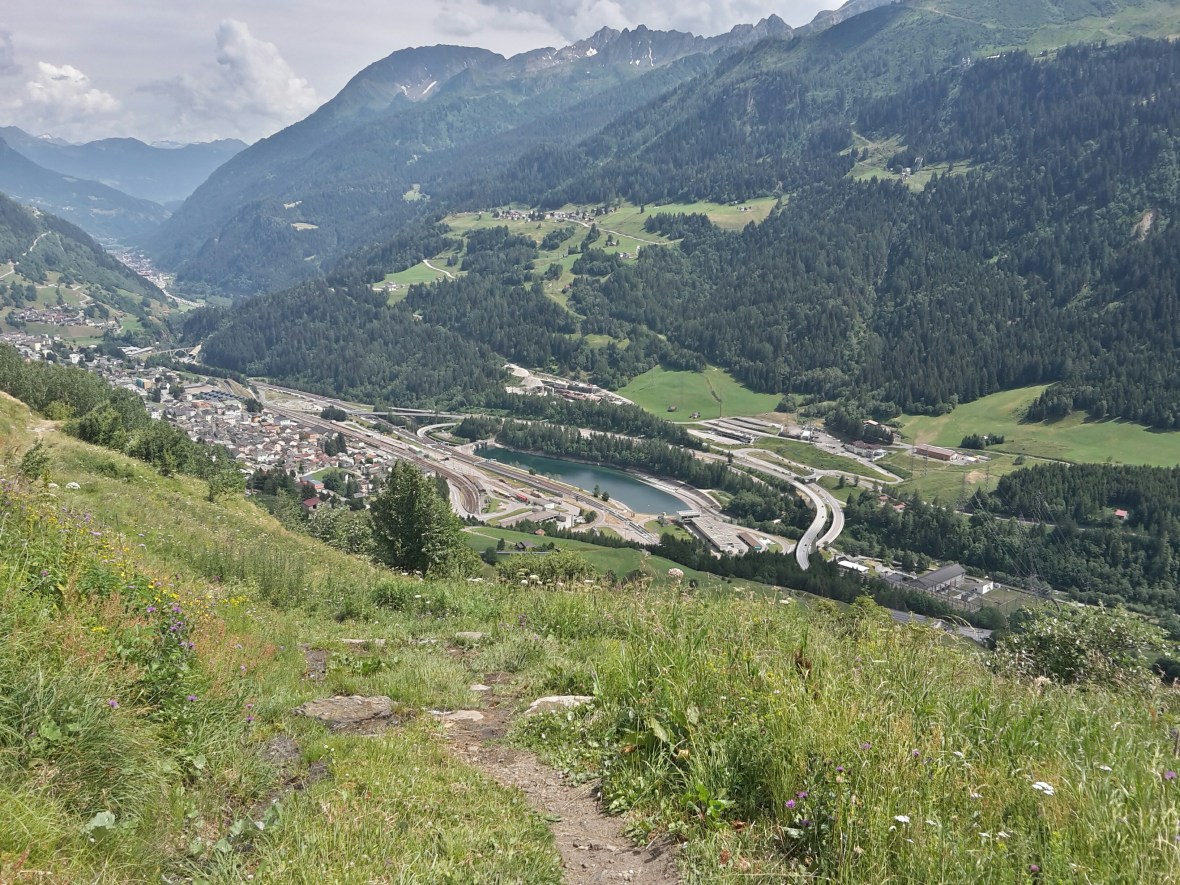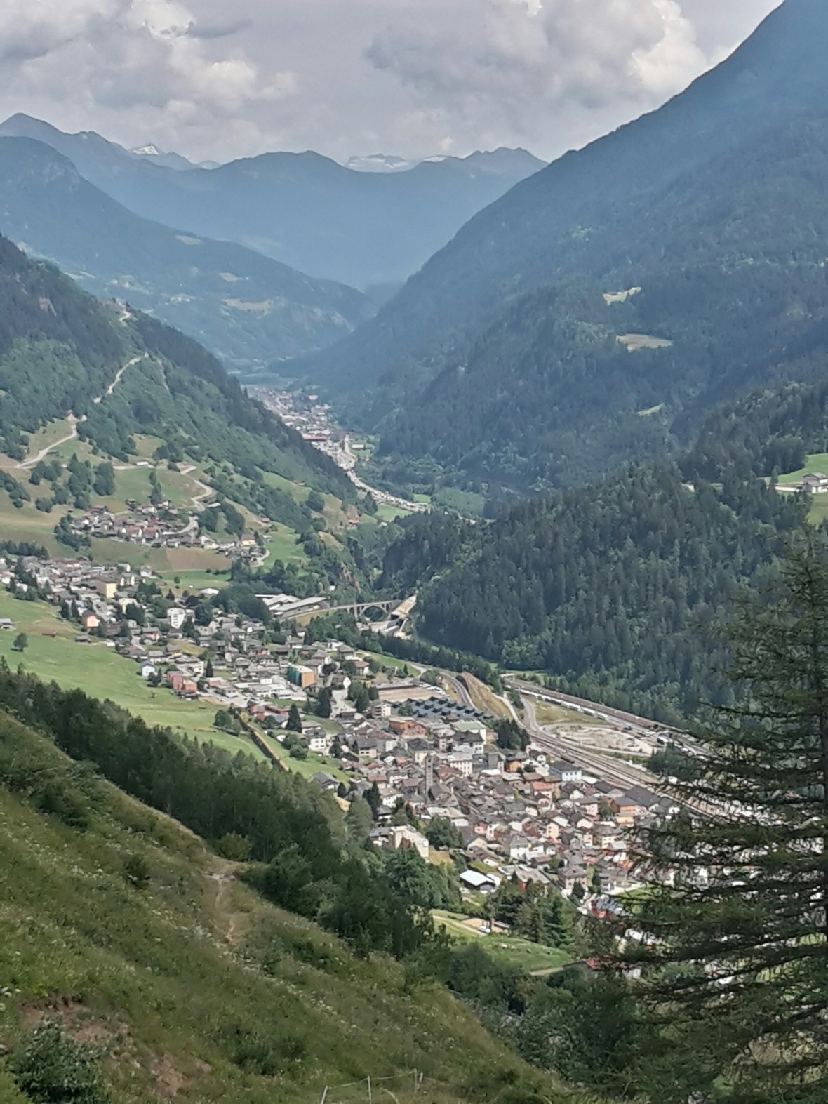 Der Blick von oben auf Ariolo. Hier erblickt der Auto -und Zugfahrer wieder Tageslicht.