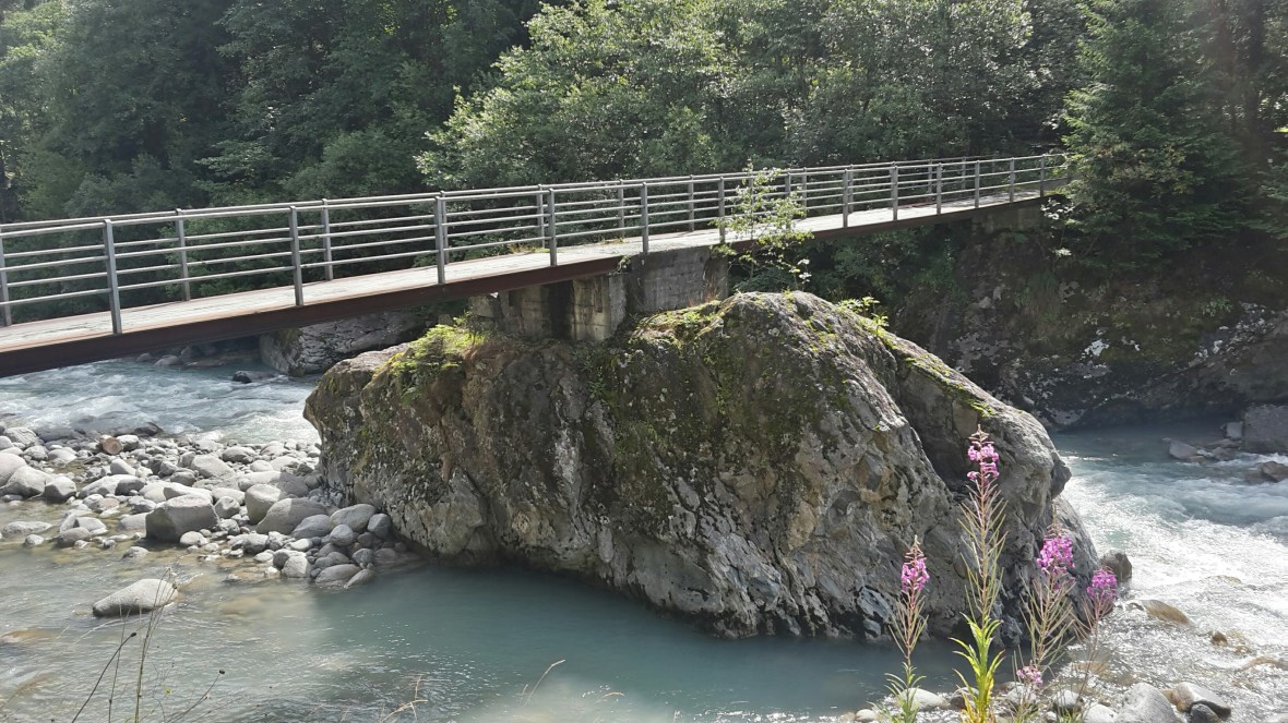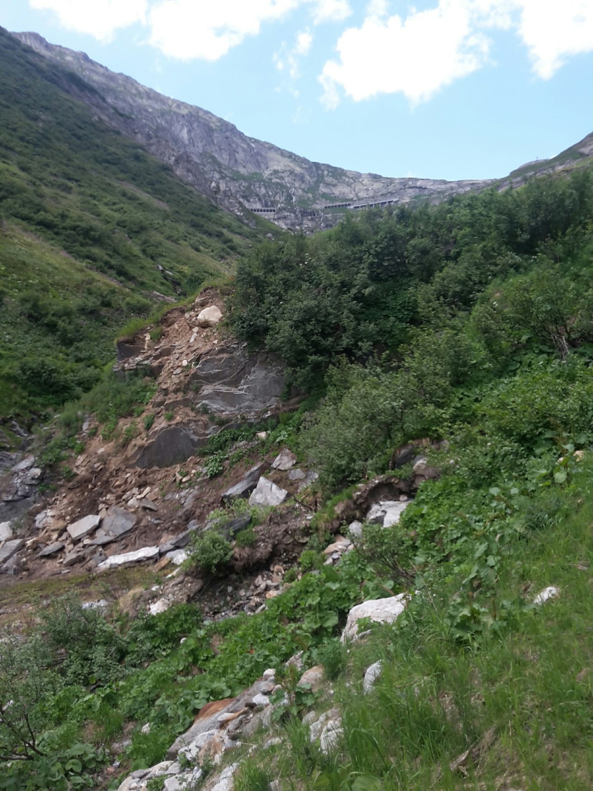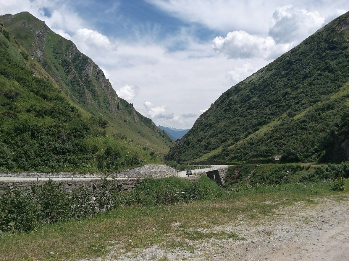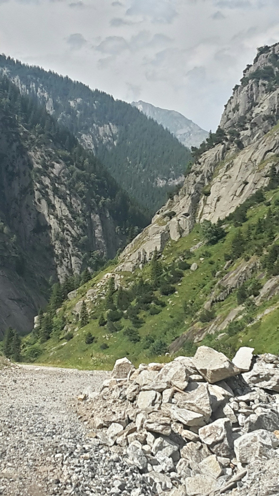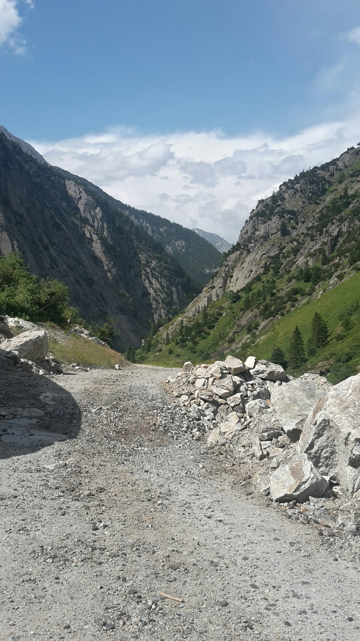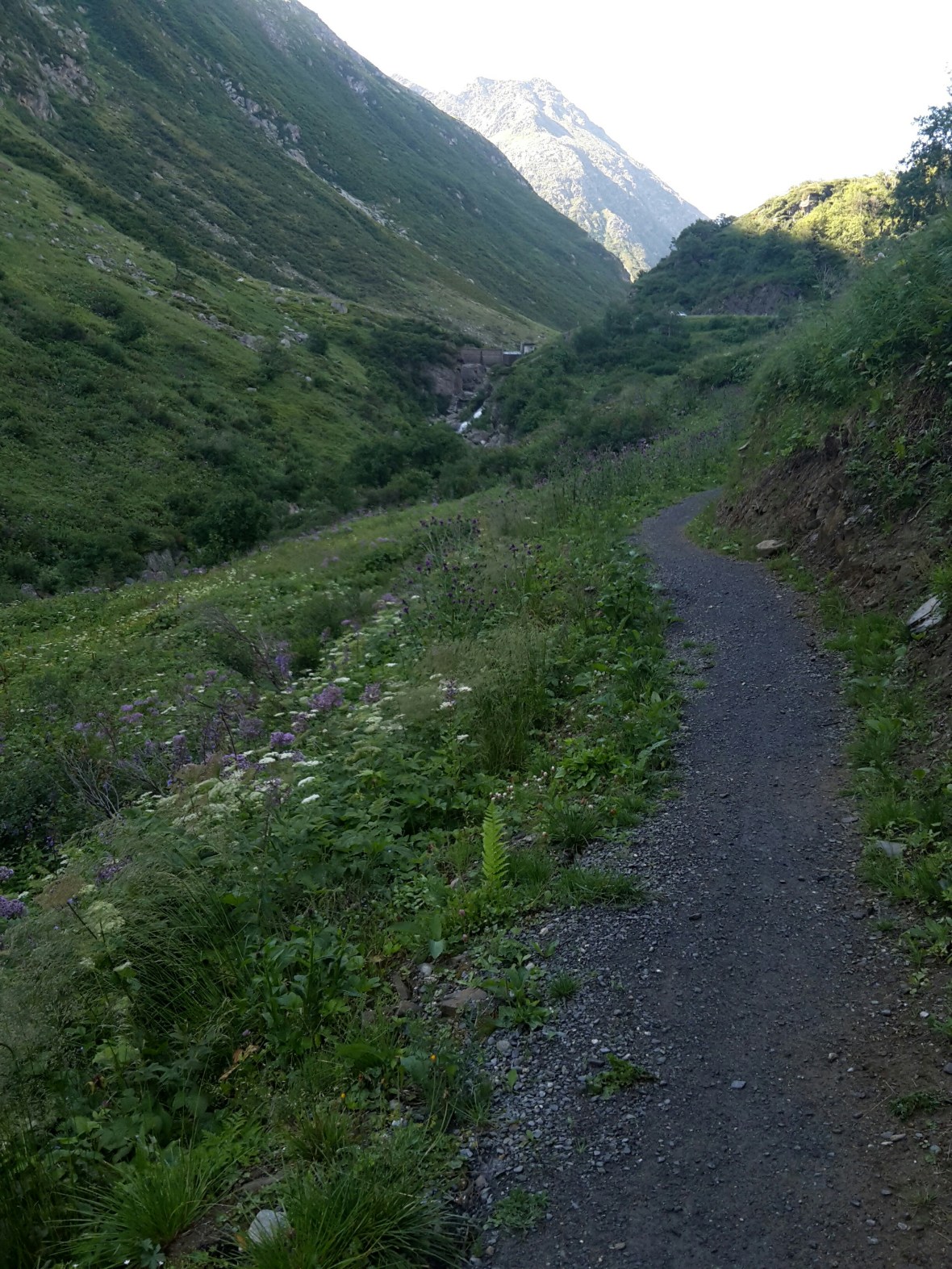Das Tal weitet sich dann und es geht langsam aber stetig bergauf. Heute gleicht der Weg meistens eher einem Spazierweg. Ich lasse mir Zeit und genieße einfach alles. Ihr seht blauer Himmel, angenehme Temperaturen und intensive Farben. Die Murmeltiere pfeifen, ab und zu zwitschert ein Vogel. Verkehr ist heute sehr wenig. Anfangs begleitet mich noch die Bundesstraße, später rückt sie in weite Ferne und ich bin praktisch allein. Wunderschön!