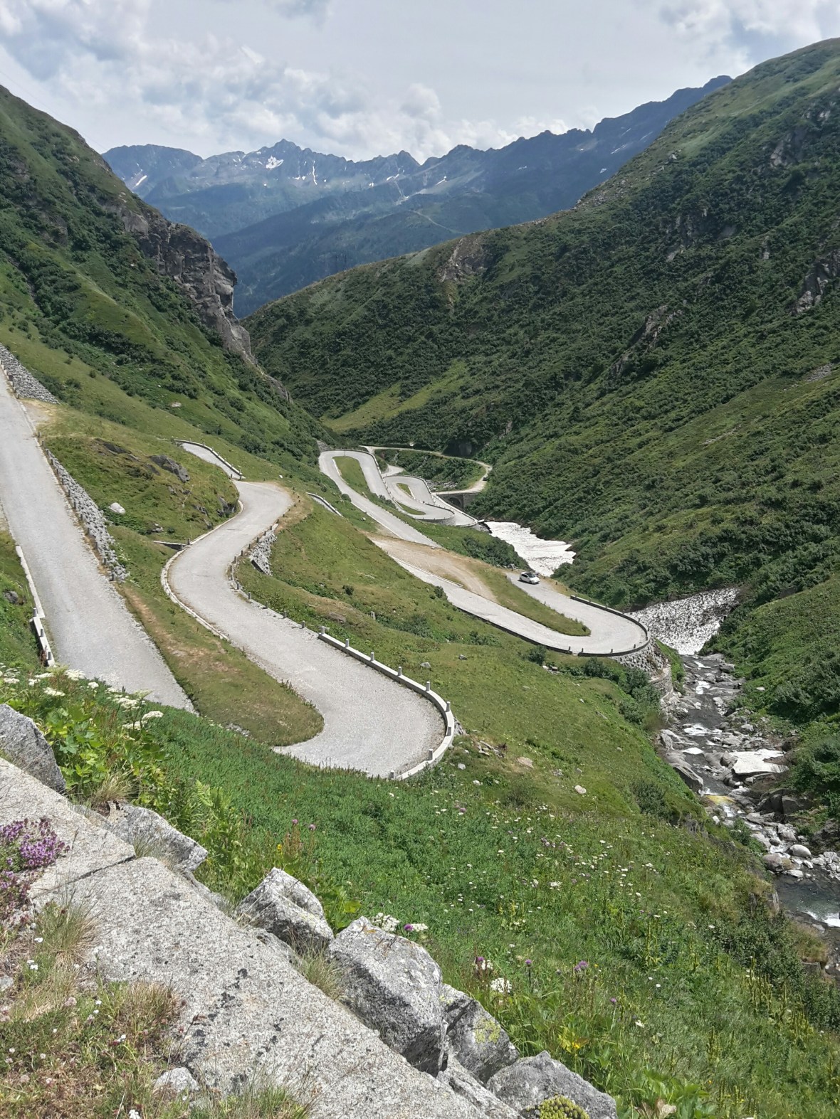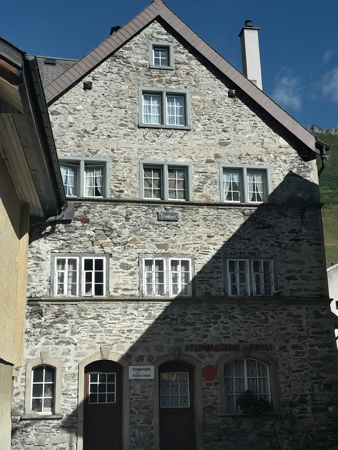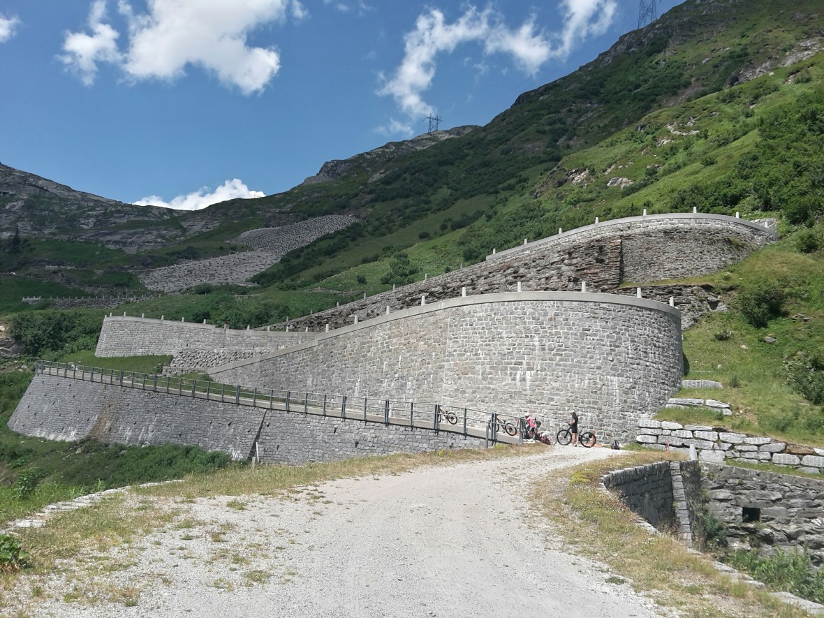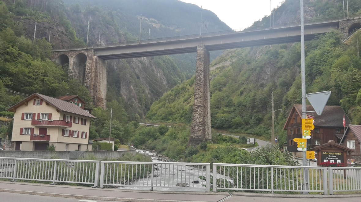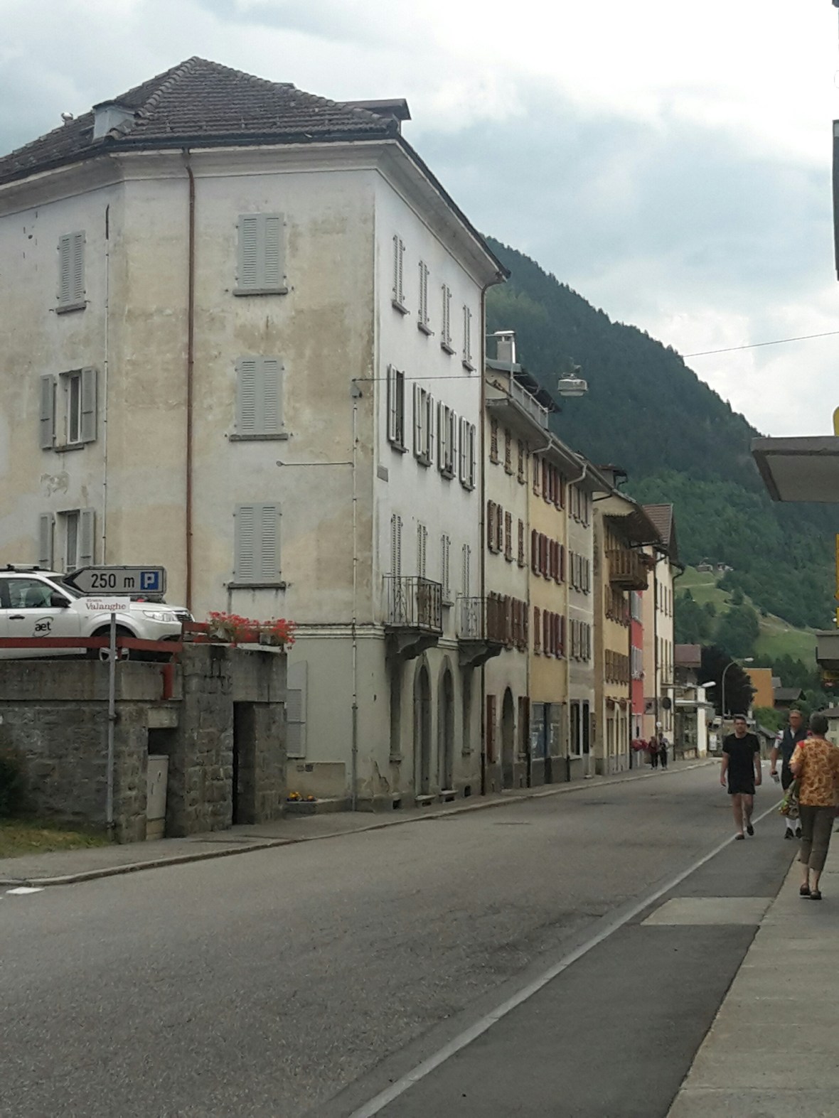 Die Passstrasse hinunter, alles mit Kopfsteinpflaster gepflastert, benutzen scheinbar nur Rennradfahrer und ein paar Cabriobesitzer. Der Rest nimmt die Bundesstraße und ist sofort ausser Sicht. Das Tal ist extrem eng. Der Abstieg herausfordernd, einige Klettereinlagen waren gefragt. Ein Stück war mir dann doch zu gewagt und ich habe die Straße genommen. Wer es nicht gewusst hat, ab der Passhöhe beginnt das Tessin und ab da wird italienisch gesprochen und geschrieben. Immer noch Schweiz und doch ganz anders als vorher, echt verblüffend.