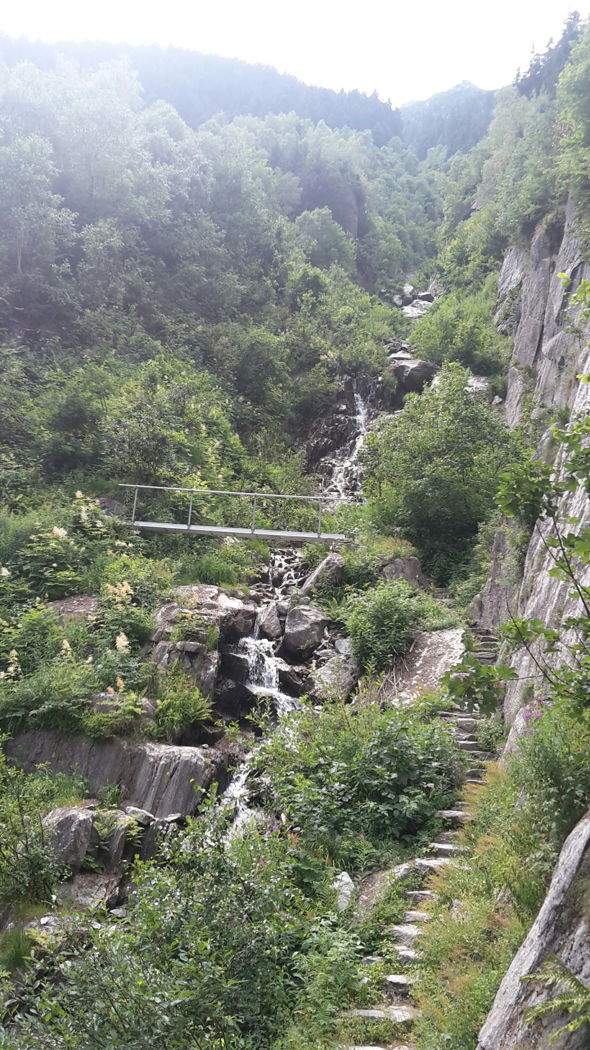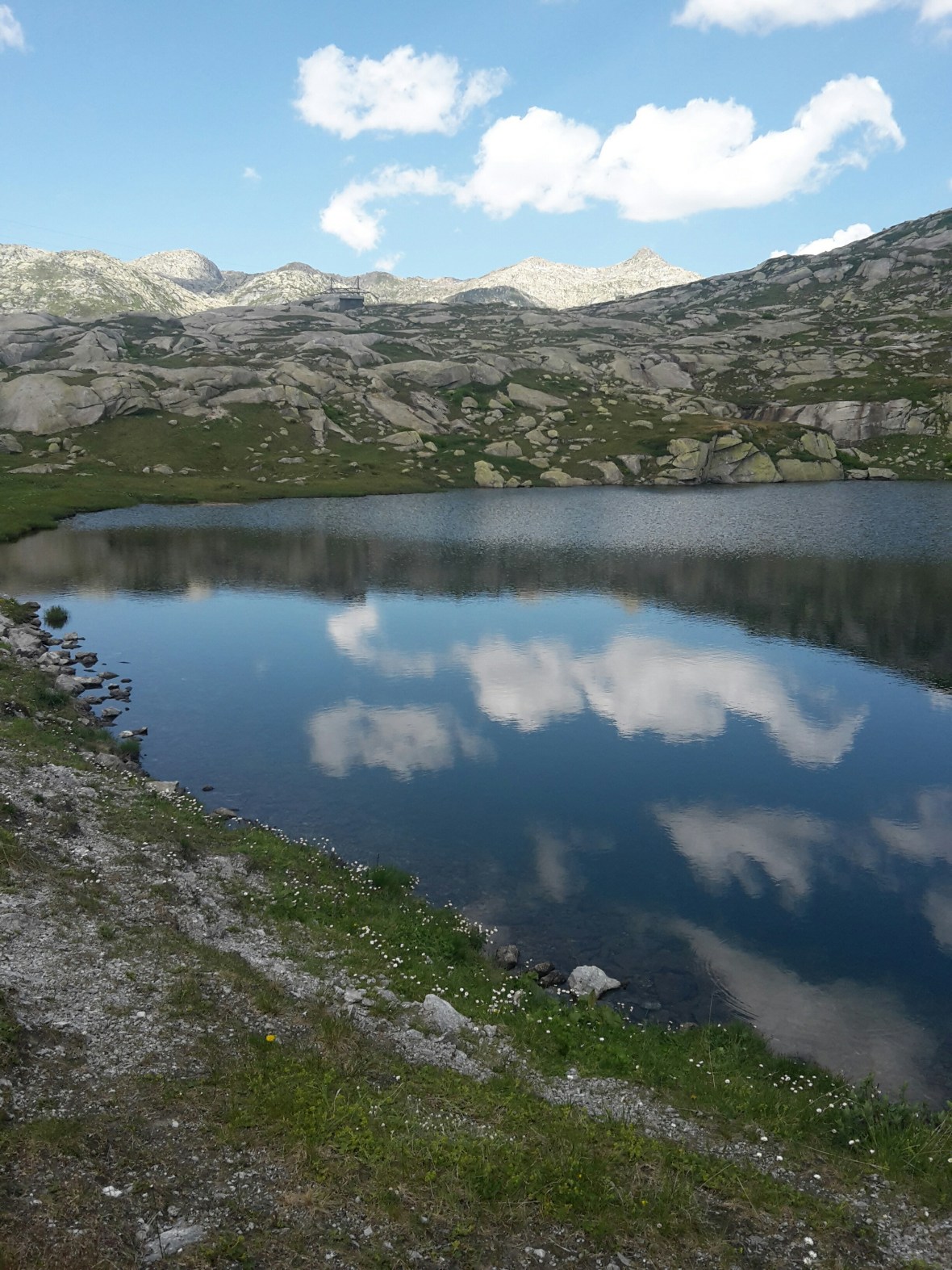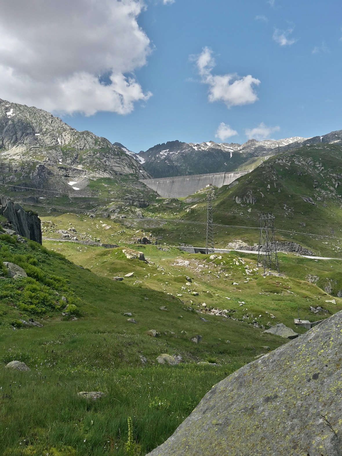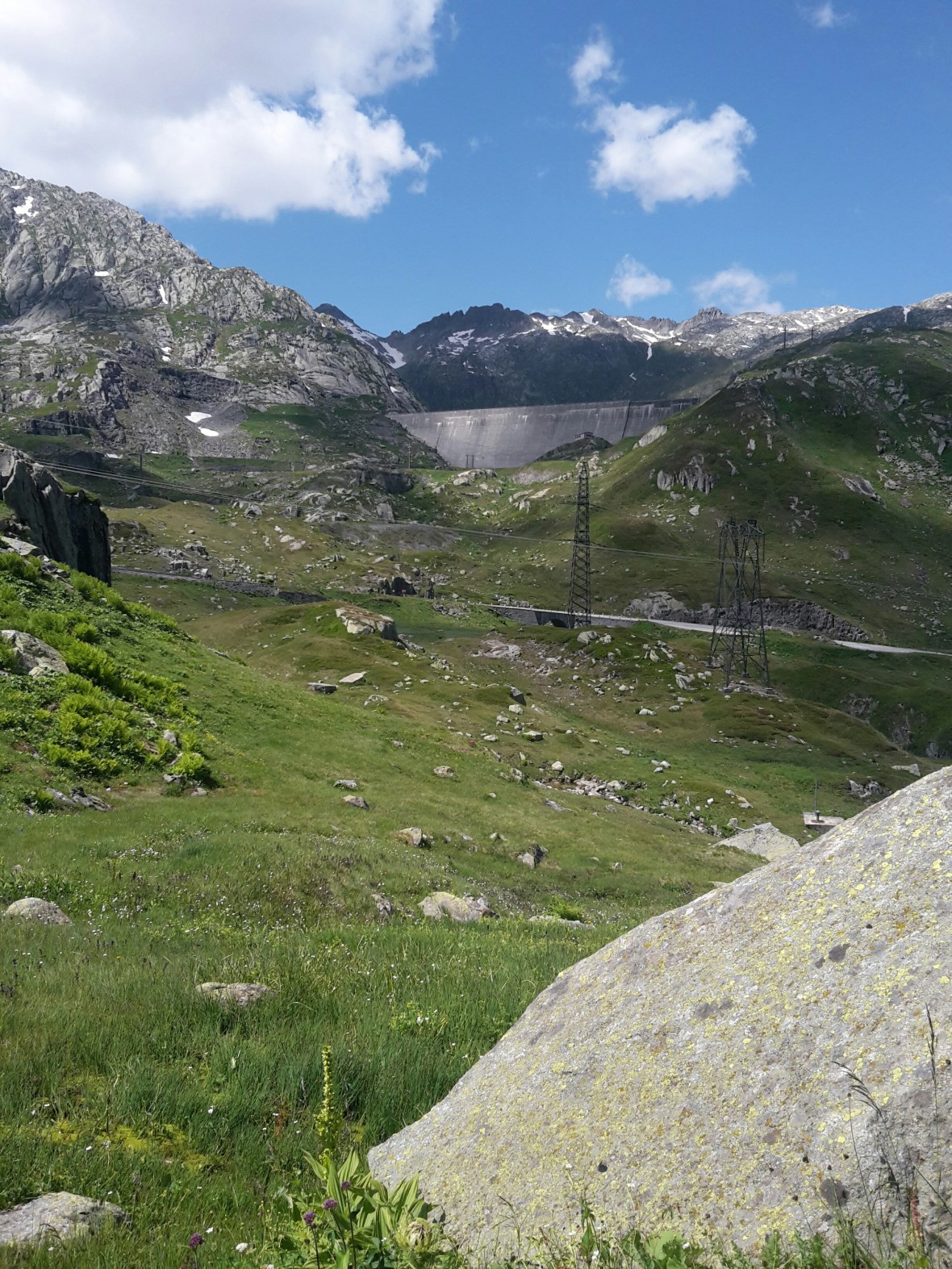Die Passstrasse hinunter, alles mit Kopfsteinpflaster gepflastert, benutzen scheinbar nur Rennradfahrer und ein paar Cabriobesitzer. Der Rest nimmt die Bundesstraße und ist sofort ausser Sicht. Das Tal ist extrem eng. Der Abstieg herausfordernd, einige Klettereinlagen waren gefragt. Ein Stück war mir dann doch zu gewagt und ich habe die Straße genommen. Wer es nicht gewusst hat, ab der Passhöhe beginnt das Tessin und ab da wird italienisch gesprochen und geschrieben. Immer noch Schweiz und doch ganz anders als vorher, echt verblüffend.