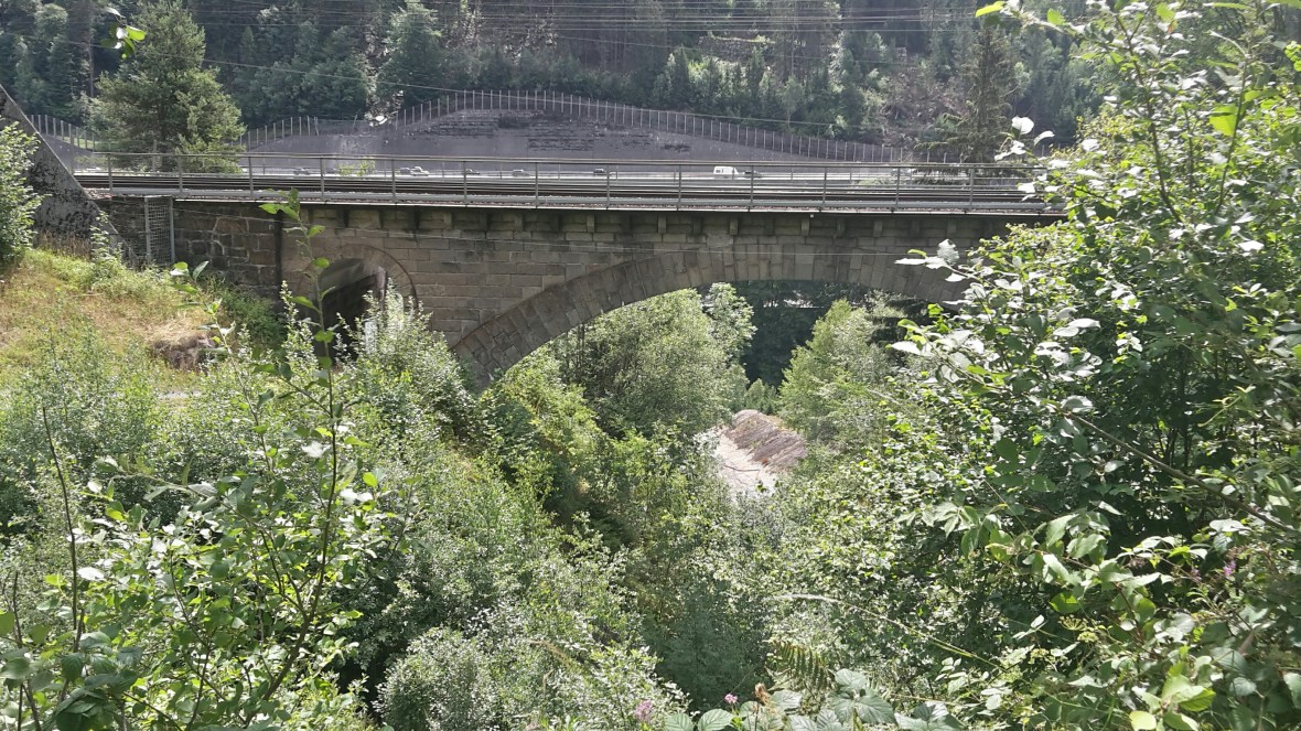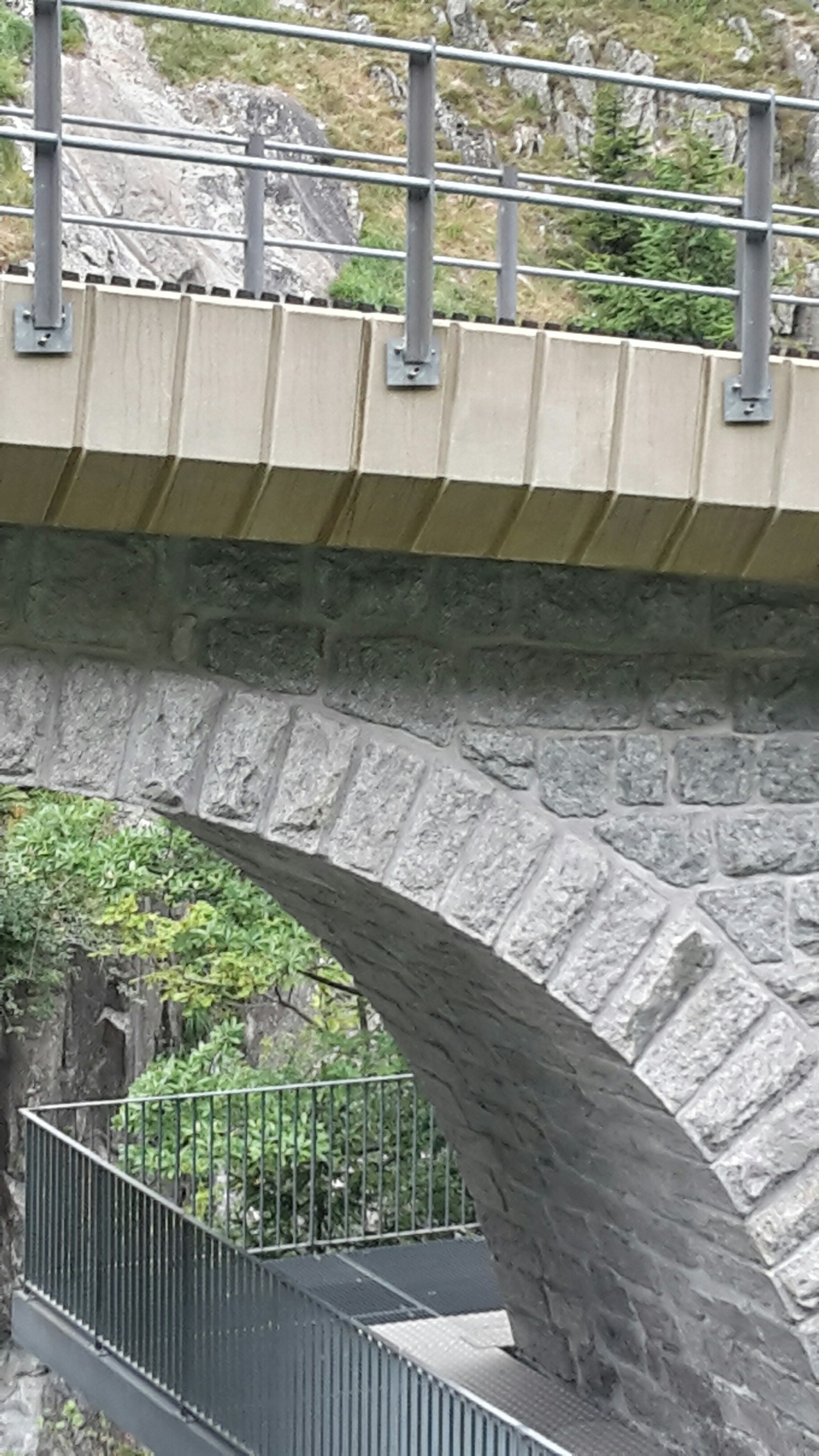Die uralte Brücke hat eifach einen breiten Aufsatz erhalten.