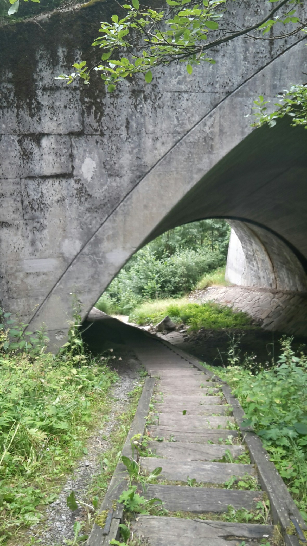 Schon ziemlich weit oben muss ich einmal unter der Straße durch.