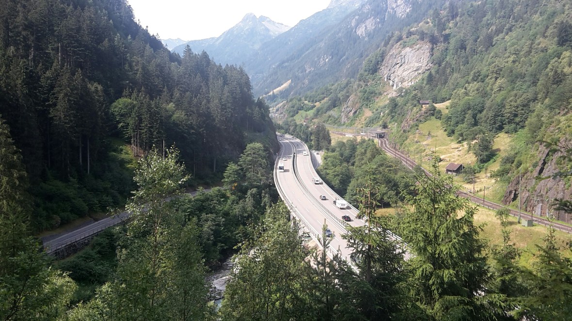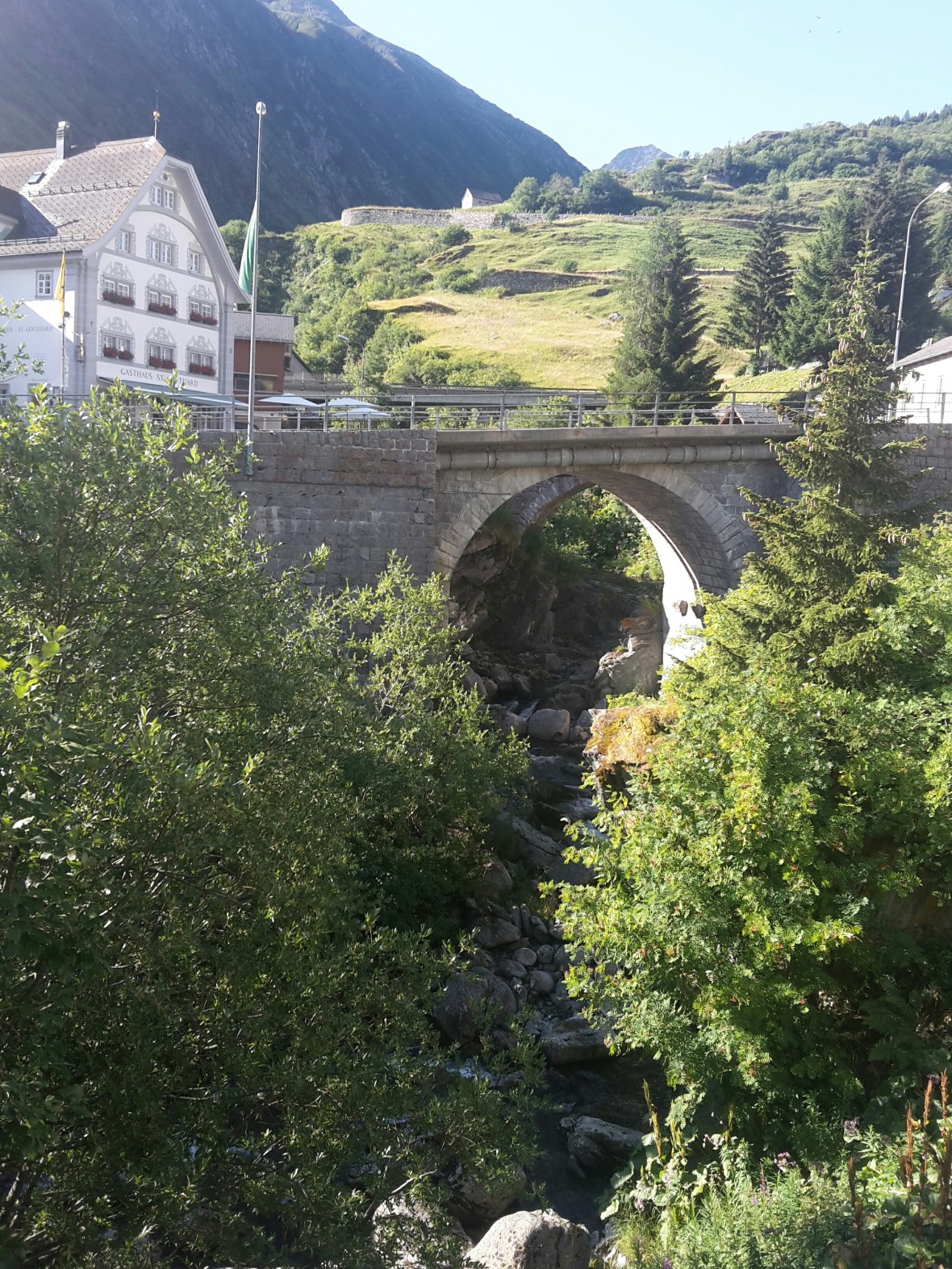 Der Aufstieg zum Gotthardpass beginnt erst mal schattig in enger Schlucht.
